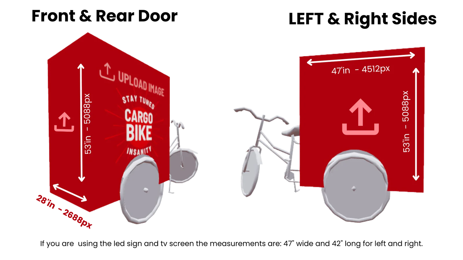 Upload the billboard designs as PNG in a ZIP file for the sides of the cargo bike.(see size chart below)